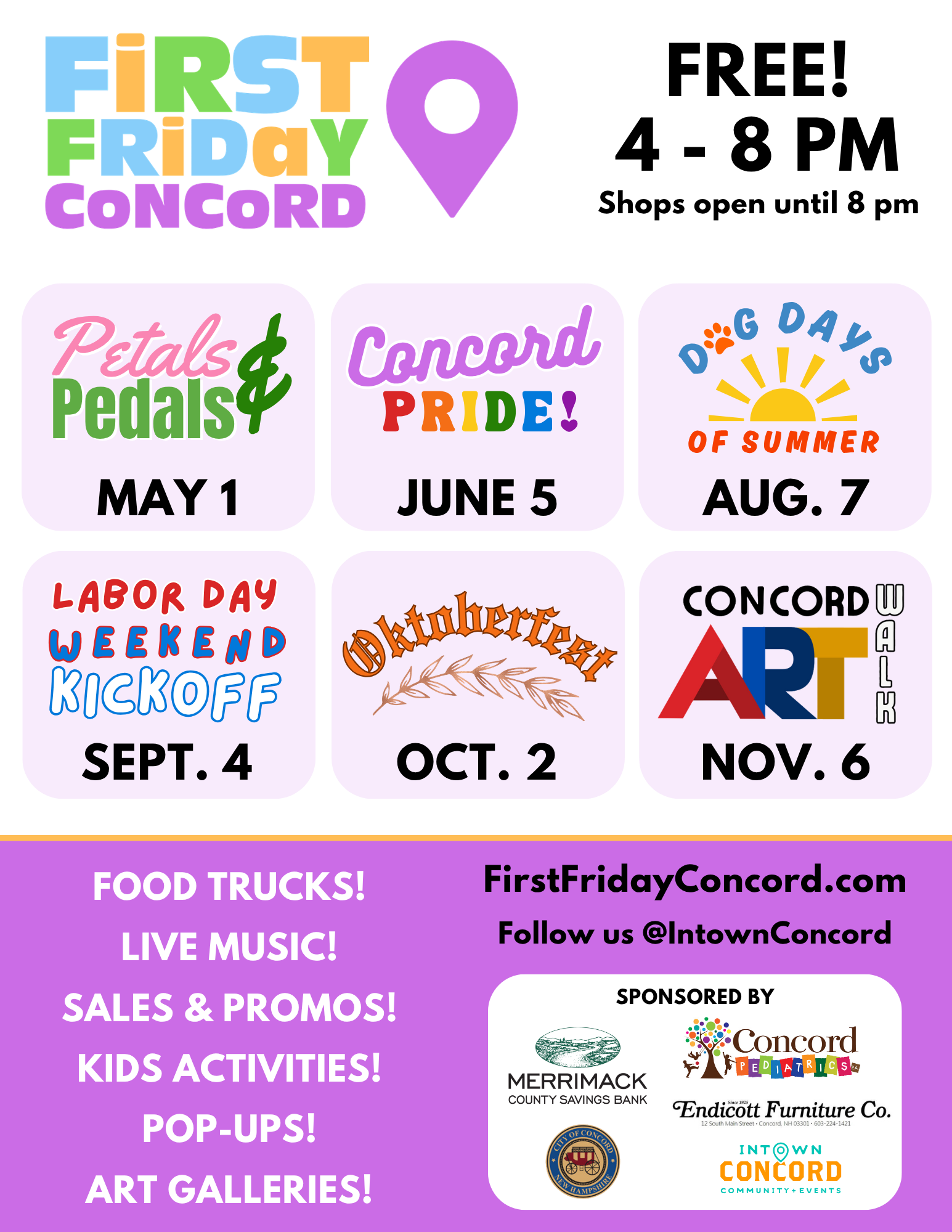 First Friday Concord 2026 Brand kit Download First Friday Logo Download First Friday Flyer Download May FF Logo Download June FF Logo Download August FF Logo Download September FF Logo Download October FF Logo Download November Logo